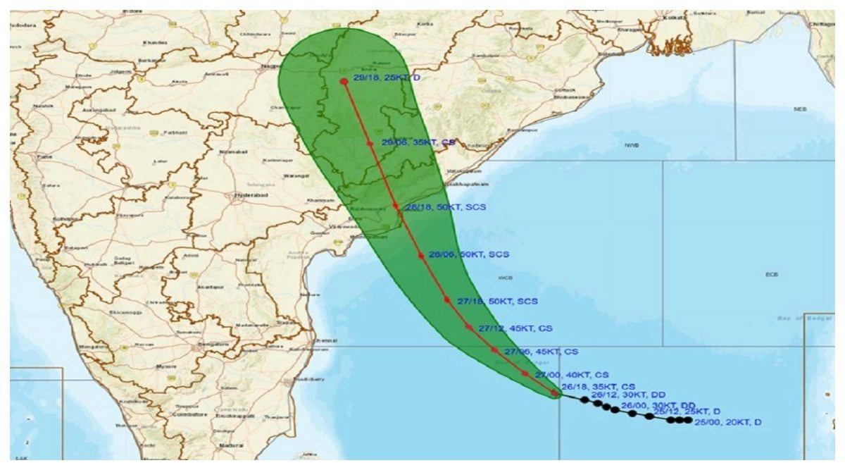 గత ఆరు గంటల్లో గంటకు 10 కిలోమీటర్ల వేగంతో పశ్చిమ-ఉత్తర పశ్చిమ దిశగా కదులుతున్న ఈ తుపాన్ ప్రస్తుతం కాకినాడకు 190 కిలోమీటర్లు,మచిలీపట్నానికి 110 కిలోమీటర్లు,విశాఖపట్నానికి 280 కిలోమీటర్ల దూరంలో కేంద్రీకృతమై ఉందని భారత వాతావరణ విభాగం (IMD) వెల్లడించింది.