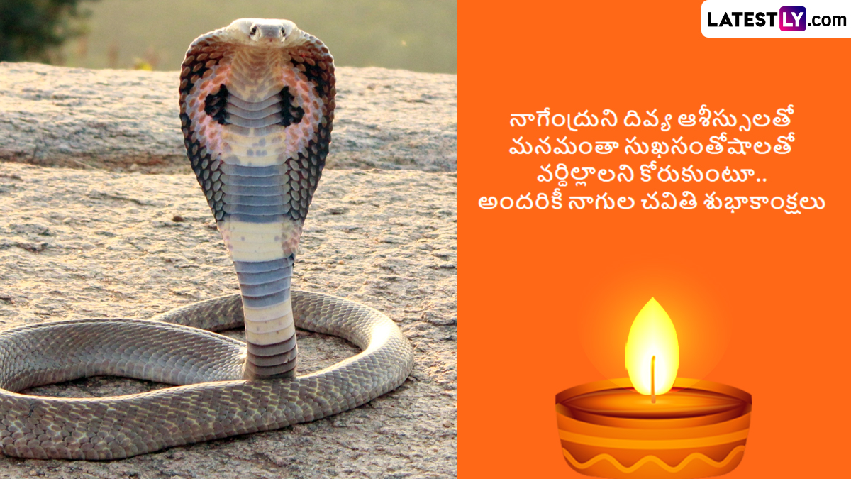 Nagula Chavithi Wishes in Telugu: నాగుల చవితి (Nagula Chavithi) హిందూ సంప్రదాయంలో పాములను పూజించే పవిత్రమైన పండుగ. చంద్ర మాసంలో చతుర్థి (నాలుగవ రోజు) రోజున జరుపుకునే ఈ పండుగను నాగ పూజా దినంగా పరిగణిస్తారు. ఈ రోజున భక్తులు నాగ దేవతలను ఆరాధించి, కుటుంబ శ్రేయస్సు, సంతానాభివృద్ధి , ఆరోగ్యం కోసం ప్రార్థిస్తారు. 2025లో నాగుల చవితి అక్టోబర్ 25, శనివారం రోజున జరుపుకుంటారు. ఇది కార్తీక మాసం శుక్లపక్ష చవితి రోజు, అంటే అమావాస్య తర్వాత నాల్గవ రోజు. ఈ పర్వదినం తర్వాత నాగ పంచమి, నాగ షష్టి పండుగలు వస్తాయి.